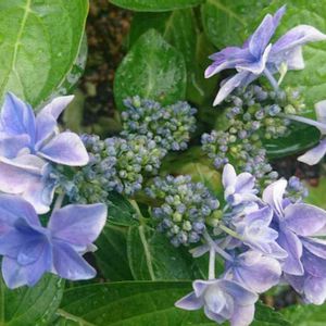 毎日☔️が上がってすぐ✂️して飾るの繰り返し💜💙 今日はガクアジサイ😊 コンペイトウと3年前、市の紫陽花剪定教室で挿木でいただいてきたガクアジサイ💙💜 今年初めて咲きました✨✨ 外で咲いてるより飾った方がいいかも〜😆