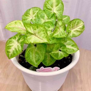 🌿シンゴニウム.ミルクコンフェッティー 葉っぱが1枚増えました👏👏👏 元気いっぱいで嬉しい🪴🪴🪴 これからもよろしくネ❣️