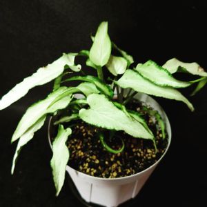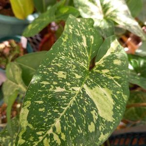 シンゴニウム ミルクコンフェッティ 2023/4/2撮影 植木鉢買いに行ったダイソーで、見つけてしまいました! こんな、レアな子をたった110円で… 思わず、売り場にあった子 全部連れて帰りました!