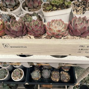 ぺレスデラロサエ ピンクエッジ🩷 普通のプレスデラロサエより名前の通りピンク(笑) 可愛いちっちゃなバラみたいです😄🌹 昨年セダムだから外置きしたら★にしてしまったので、今年は過保護にハウス内に居ます(笑) 昼間は日差しが暖かいですが、朝晩冷え込みます😅ハウスの内張りをプチプチ追加しました😁