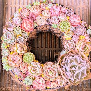 あちこちのスカスカになった寄せ植えを解体しまくって、エケベリアリースを作りました(笑)😄 これで場所問題も、ちょっと解消(笑) 可愛くできて、超満足(笑) 寄せ植え最高です😆✨