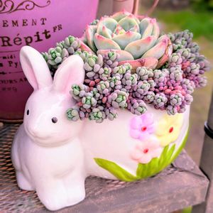 100均のシュガーポットの寄せ植え🐇 エケさんのまわりに植えたパープルヘイズが、いい感じに色づいてのびて来ました(笑)カワイイ♥ とにかく今週は疲れMAX😩 土日はのんびり鋭気を養いたいです😵💫