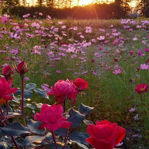 🌹と夕日とコスモスと… 今日も( *´꒳`*)੭⁾⁾ オツカレサマデシタ ɞ˚˙ おやすみなさい(*´˘`*)✧*。