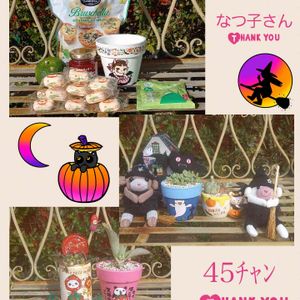 ☆彡good(。・ω・。)morning♪ 今こなこた🐕🐕Gardenは 秋じまいの真っ最中 昨日は畑の野菜をつみとって 秋桜を片付けて 今日からまた4時間運転して 実家なので バタバタしています(´,,-ㅿ-,,`)フゥ- なのでいちごの日 写真撮ったけど picしてませんでした💦 今日はトトロの日なので いちご🍓チャンの 可愛いいちごトトロで 参加します♫ ぷりまみチャンのリメ🥫に ネックレス 隣のピンクの可愛いPANDAの鉢 45チャンから頂きました♫ *:・(*-ω人).*゚アリガトウゴザイマシタ♪ 子宝草をIN すでに沢山の赤ちゃん👶 45チャンからお迎えした 可愛いハロウィンの鉢には ペンステモンと 名無しの韓国苗 まつぴよチャンのデビモンチャンと コウモリ🦇チャンで 🏷ハロウィン月間に参加します♫ なつ子チャンから 先日の私の 牛の日3周年記念 🎁企画のお礼便頂きました(#^.^#) めちゃくちゃ可愛い 手書きのハロウィン🎃ペコチャン鉢 ご自宅で採れたゆす 美味しいラスク、ジャム 可愛いハロウィン🎃マシュマロ これからの季節に嬉しい入浴剤 沢山ありがとです(〃∇〃)ゞ 素敵な繋がりに感謝(*´ω`人)感謝です💕 楽しい日曜日 お過ごし下さいね(*´˘`*)♡