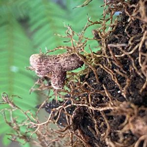 なんじゃこれ⁈ (・ω・ノ)ノ ちびエバの鉢増しで発見! 太い根っこ⁇ 細い根っこの先の方から出てる。 こんなのがいくつか、1番大きく育ってる子に。 母エバちゃんにもこんなのあったっけ⁈(・・?) ’19-25✳︎2019年8月中旬剪定/2020年1月上旬発根/2月下旬鉢上げ/2021年3月下旬蕾/4月上旬開花/4月下旬鉢増し