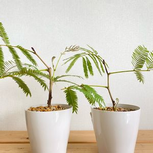 3/5に投稿したちびエバ’19-No.25の新芽、 ちょりちょりになっちゃった‼︎(゚д゚lll) 多分水切れ…。 でももう次の芽が育ってるから、大丈夫( ・ㅂ・)و ̑̑ あと、蕾も発見! 今年のエバーフレッシュのお花、第1号は君だね(*´꒳`*) エバちゃん(母)も新芽がいくつか育ってきた! 昨年のお目覚めはGWだったから、それよりかなり早め♡ ’19-25✳︎2019年8月中旬剪定/2020年1月上旬発根/2月下旬鉢上げ