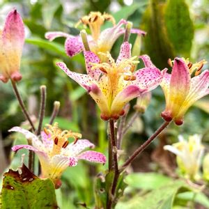 小さな庭にパズルピースのように色々な花をたくさん植えてきたけれど その中でも私にとって特別なのは この『ホトトギス』ですよ 落葉広葉樹のハナミズキの足元に植えて 夏の西日対策をしていても 葉っぱは毎年ボロボロになってしまう 奥に見えてるクリスマスローズは大丈夫なのになぁ それでも暑さが少し落ち着いた頃に咲き出す花は無傷な姿を見せてくれる 毎年スマホを持ってワクワクしながら近づき 膝を折ってニヤニヤしながら眺める時間が嬉しい 娘曰く「お母さん写真撮る時怪しい顔になってたよ」 😱😱😱 うちの庭の前は結構人が通る道なので しゃがむ前に道路の人通りチェックをするのは外せない😓