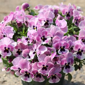 こちらはピンクのバラの寄せ植え。 モリモリだったペチュニアは、仕立て直し中。刈り込んだ為まだ花は少ないですが、これからまた綺麗に茂ってくると思います。 よく咲くスミレ『ミルクセーキ』 本当によく咲いてくれます。