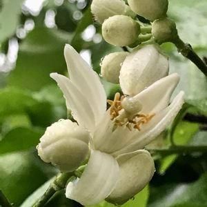 グレープフルーツの花が咲きました! 去年は1つも着果しなかったのですが、今年こそは自分の育てた物を食べてみた〜い😋