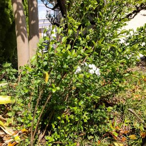 小さな小さな白い花です♡ 家の玄関先の生垣のイヌツゲに お花が咲いています 「あれ?今頃咲くんだっけ?」 図鑑で確認するとお花は6月頃とあり 3枚目は お散歩で見付けたマメツゲ と思われる木に黒っぽい実がなってました うちのイヌツゲに実がなったのを 見た事はないのですが… (※雄株ですね) 今の季節 実をつけている方が普通な気がします そしてイヌでもマメでもないツゲ 見てみた~いと思ったのでした あれ?結局何が言いたかったんだっけ…? 冬なのにイヌツゲのお花が咲いてるお話でした ※5枚目 右下にマメツゲの実の写真あるのに 切れてましたぁ😭 ※印は投稿後 追記しました p