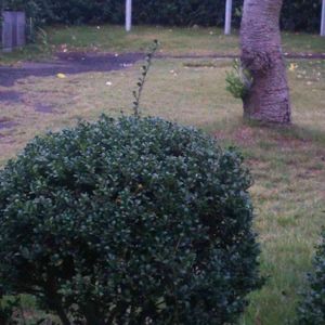 🐕🦺散歩道で 近所のお宅の門戸前に、丸く刈り込まれ植えられていました。 葉はツヤがあり互生 丸っこい感じです。 追記 plant hunterアンジュさんより マメツゲと教えて頂きました。 ありがとうございました😊 マメツゲ(豆黄楊): モチノキ科モチノキ属 常緑低木 イヌツゲの1品種