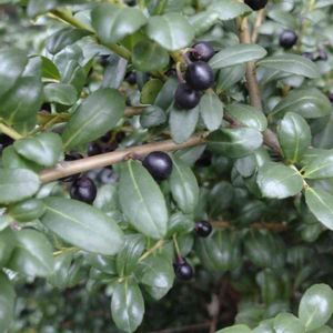 標準和名 マメツゲ 別名 マメイヌツゲ モチノキ属 イヌツゲの変種でソメイヨシノと同じくすべてクローンで雌木 ツゲはツゲ属で別系統