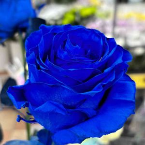 ビックリ🫨‼️薔薇が青かった🌹 真っ青👀 青いバラはないらしいですね 青の🟦お水ですかね 葉っぱも青い🍃本物でした