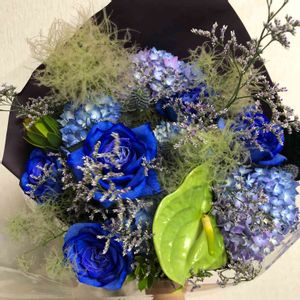 青が好きなので、青い花束をいただきました💐嬉しい😆💙