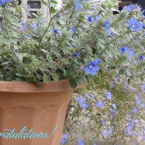「アズーロとアメリカンブルー💙」 今朝、テラスに出てみたら 隣通しのふたつのお花たちが競って咲いていました💕 (お祝いpic.です💐) チーム・ブルー はちなつめさん2900pic🎉
