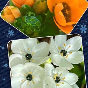 おはようございます☀️ 今日のお花 オーニソガラム🧡🤍 良い一日となりますように🍀 11月中旬に「バランサエ」「ヌタンス」と言う球根を植えました 今日のお花の名前が 「オーソニガラム」となっていました 「オーニソガラム」と同じと言う事ですかね🤔 ちょっと悩みました😅 この件はユーザーサポート様に早朝問い合わせしていました 午後になり返信がありまして「訂正します」との事でした! 13時には既に「オーニソガラム」に変更されていました 過去picをコラージュ