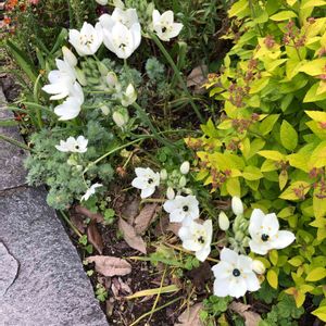 今日のお花 🤍オーニソガラム🤍 オーニソガラム アラビカム クロホシアマナ (黒星大甘菜) キジカクシ科(クサギカズラ科) オオアマナ属 白い花弁に‥✨✨ 黒い👀がアクセント! 5月上旬pic