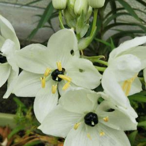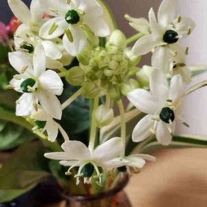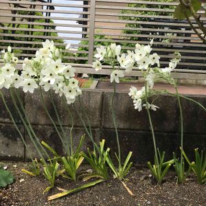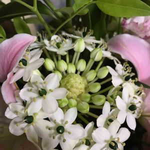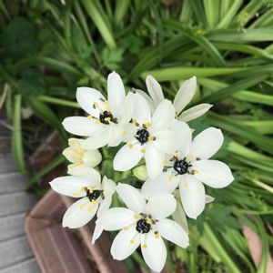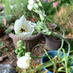 オーニソガラムアラビカム🌱 木の下にあった鉢から、こんな花が咲き始めました。 名前がわからなかったのですが、 オーニソガラムアラビカム🌱と教えてもらいました。 raizou サンありがと。