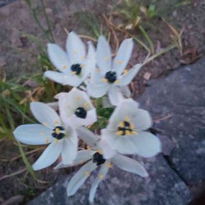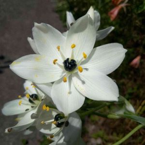 散歩中に見た花です。 真ん中にあるのは 種子かなぁ💕 HIDE さんに教えて いただきました。 ありがとうございます😊 オー二ソガラムアラビカム なそうです💕