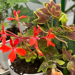 枯れかけた紅葉ばゼラニウムを外に出してお日様にあてました。☀️🌞 葉っぱ🌿も元気😀になり、花まで咲いてくれました。嬉しい☺️😊🤗💕💖
