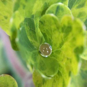 おはようございます😊 雨粒シリーズNo.333 今日は斑入りのオダマキさんの葉っぱです🌿 🏷️斑入りフェチ