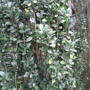 犬黄楊 イヌツゲ スカイペンシル🌳🌼🌼 ご近所パチンコ🅿️ 車道から柵越し🤳 何年経っても全くというほど樹高が伸びない木です♡♡ ボリュームはちょっとだけど出たかな🌳🌳 極小花がかわいい(╹◡╹)♪♪♡♡