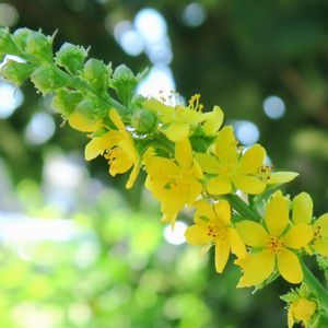 庭に見たことのある、黄色い花が咲き始めました🎶🤗 昨年の今頃、名前を覚えたのに🤔 しかたなくAIに聞いたら思い出しました😅 キンミズヒキ(金水引)でした😄