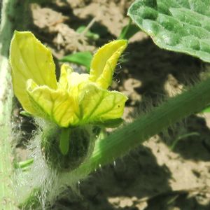 今年はスイカの植え付けが遅れたため、花は付けますが全て雄花❗ それでも、漸く雌花が付きました🎶🎶😄 今年こそカラスには💪