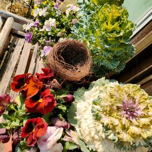 今日のお庭 寄せ植えと鳥の巣🪹 梅の花と蜂🐝 ピンクネコヤナギ クリスマスローズ (*˘︶˘*).。*♡ 鳥の巣🪹はお庭に落ちてました🤭