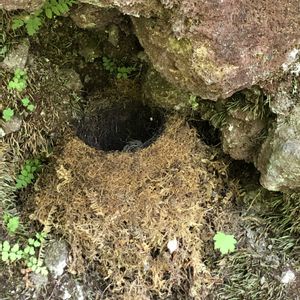滝の近くの岩場で見つけたんだけど 鳥の巣ですね🦤 苔で完璧な円と流線を構築🦤 美しいですね😃
