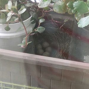 〈地道投稿〉おはようございます☀朝水やり中🙄 🐥鳥(セキレイ!?)が駐車場に掛けてるプランターから飛び立ちました😧ガラス窓越しに覗き見したら巣を発見📲卵が五個あります。さわらず・手を出さず・知らぬふり続け、見届けに徹し😀成長巣立ち待ちます。