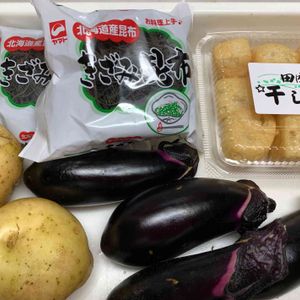 迎え盆のご馳走 昔からずっと変わらず煮物作ります スーパーの入口には 刻み昆布 干しあげ が山積みされています