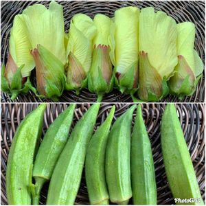 せんぜ畑の恵み ❷ 花オクラはヘタを取っ適当な大きさに切る オクラは軽く湯がいて刻む ボールに入れてポン酢で混ぜる (すぐにネバネバしてきます) 鰹節.しらすぼしなど混ぜて お味.調整仕上げしてください どうぞ 箸休めの一品に🙇♀️