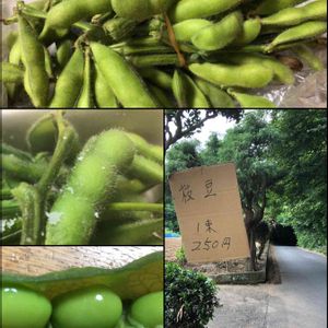 待ちに待った枝豆シーズン🎶 ご近所さん御用達の農家さんの枝豆🌱 枝豆販売中かどうかは、農家さんのご自宅前の道にぶら下がる段ボールが目印。 夕方でも、買えればラッキー😃✨ 看板見つけてガッツポーズの息子に100円玉を数枚握らせて、行かせてみました😆 食べたいだけね〜と頼んだところ、枝豆2束👍 小2のおつかい👦🏻