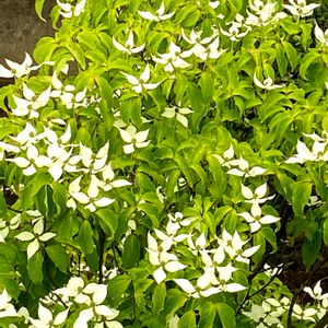 家のヤマボウシに白い花が咲きました♡ ミズキ科ミズキ属ヤマボウシ亜属の落葉高木 花言葉は「友情」 花びらのように見える総苞片をつけて 花を咲かせハナミズキのような可憐な 花びらです。