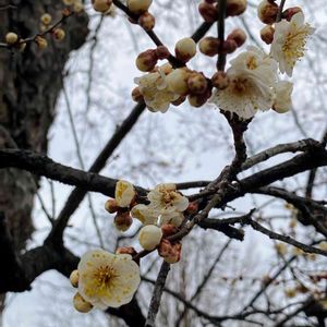 おはようございます😃 今日のお花ウメです。 ウメはバラ科サクラ属の落葉高木 花言葉は「上品」「高潔」… 公園でウメの花が3分咲きで 春が少しずつ近づいて来ています🌼 23/2/18日のpic