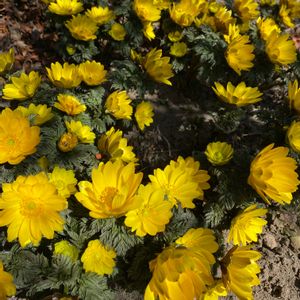 こんにちは😃 福寿草が一週間前に投稿した時より 花の数が増え満開になりました🌼 キンポウゲ科フクジュソウ属の多年草 花言葉は「幸福」「祝福」… 黄色い花はビタミンカラーで元気を もらって幸せを感じて下さい(^_−)−☆
