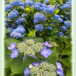 こんにちは😃 アジサイの花が咲いていました🌱💙 花言葉は「移り気」「辛抱強さ」 アジサイの種類は上と下は違いますが 風情があってとても綺麗に咲いていました♡