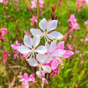 おはようございます♪ ガウラの花が咲いていました🌸 花言葉は「負けず嫌い」 ガウラは競い合って伸びながら咲き つばみはピンクで花が咲くと白く とても綺麗に咲いていました٩( ᐛ )و