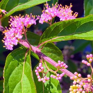 こんにちは😃 ムラサキシキブの花が咲きました🌸 花言葉は「上品」「知性」 長い雄しべの先にある黄色い葯と花冠の彩が美しく可憐に咲いていました♪
