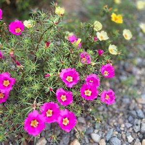 やっと一息がつきました😅 家の前に綺麗なマツバボタンが 咲きました🌸🌼 スベリヒユ科の植物の一種 開花期は6月〜9月 ピンク、ホワイト、イエローの花が 咲き始めとても華やかです♪