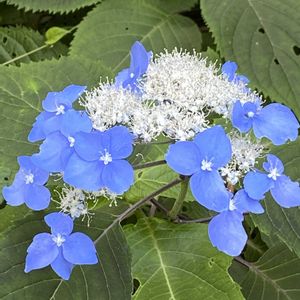 エゾアジサイ(蝦夷紫陽花) *アジサイ科アジサイ属 花期は6〜8月 太平洋側は福島以北 日本海側は北陸以北 の山地や沢沿いなどに生える落葉低木で多雪地帯で見られる! 葉は対生し広楕円形で縁には荒い鋸歯で先は尾状にに尖る! 東北地方ではよく見かけるのですが、この濃いブルーの装飾花は魅力的です♪ 既に終盤でほとんどの装飾花は裏返しで白く見えています。 両性花の受粉を終えて役目を終えた状態ですね! ほんの少しだけ残っていました♪ 8月15日撮影 岩手県 野田村 🏷️木曜日は木
