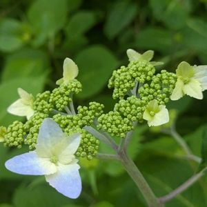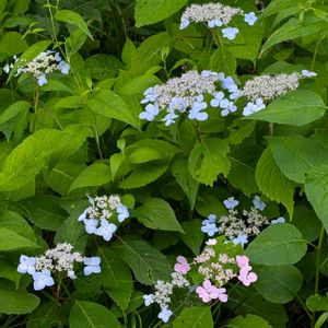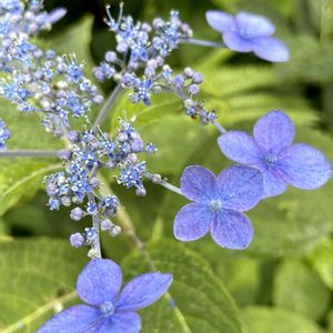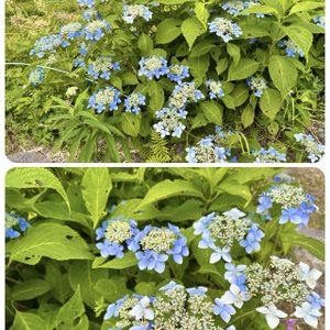 この美しいアジサイは、ヤマアジサイの変種で日本海側に生育するエゾアジサイです😍 花序も装飾花もヤマアジサイより大きめで、美しい淡いブルーが特徴です。葉とかも違うと書いてるのもありますが、アジサイの葉も変化が大きくて私には区別出来ません😅