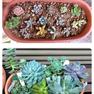 おはようございます✨ 一年前と今の状態。 幾つか植え替えましたけど、超ミニ苗がモリモリになりました。 朝ごはん、名前は後で付けますね。