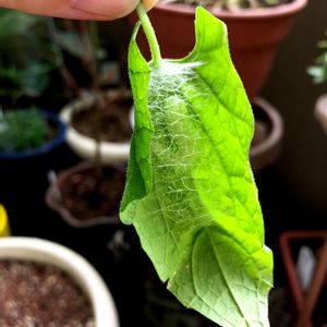【閲覧注意!】 ベランダで育てているカラスウリの葉に付いていた青虫。 マユを作りかけていますが、なんの幼虫?サナギ?かわかる人いますか? 夏はアゲハの幼虫がキンカンについて、秋はこのアオムシ。。。 ベランダが昆虫館になりそうです。。。