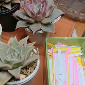 こんばんは😃🌃 朝は霜が降りて1,2度でした 🌱マディバと名札📛! 🌵マディバが最近好きです✨ 同じく、レッドギア良いな🤤 でも、育ち方が完璧では無い感じ🤔どうなのかな? でも、この形🎵好きだな~✴️ 🌱エケベリアを始めた時!山野草用の📛を500枚購入しました。幅5.5㎜の細いラベル!無くなりそうで、再購入しました🙆500枚、今回は黄色とピンクも(´▽`) ✏️えんぴつ書きは何年経っても消えますんね👍️ 細くて邪魔にならずよいです☝️