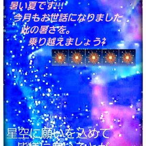 🎶🕊💐✨️🕊💐🕊🎶 🎶 ✨️🕊 ✨️🕊 🎶 🎶 7月の御礼と✨️ 🎶 🎶 8月の挨拶 ✨️ 🎶 🎶 ✨️🕊 ✨️🕊 🎶 🎶🕊💐✨️🕊💐🕊 🎶 大変失礼致しました 7月・8月と重なりました 宜しくお願い致します。 🕊🎶 今月も!宜しく 💐✨️ お願い致します 先月7月も!大変 お世話になりました... 真夏の暑さを少しばかり? 涼んで頂だければと… 涼やかな星空を!?!✨ お届け致します… 涼しくして お過ごし下さいネ!✨ 猛暑・酷暑・熱帯夜 等々 地震!!! 台風➰🌀 荒れ模様の!✨夏です。 ⚠️気を付けてお過ごし下さい。水分補給 等々!!!