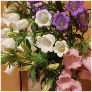 カンパニュラは、小さなブルーや紫色の花をたくさんつける可憐です。 和名 風鈴草 フウリンソウ 別名 釣鐘草 ツリガネソウ 開花時期 5月から7月 花の色 青、紫、白、ピンク 南ヨーロッパ原産のキキョウ科の植物で、明治初期に日本に入ってきたと言われています。ラテン語で「小さな鐘」を意味するカンパニュラは、風鈴のようにふっくらとした花の形と優しい色合いが魅力です。 花言葉は、「感謝・誠実な愛・共感・節操・思いを告げる」などです。花言葉から、恩人や恋人へ感謝の意を示すプレゼントに適している花と言われています。 ではまた!