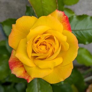 ハイブリッドティーローズ リオサンバ 四季咲バラ 黄色→オレンジ→朱色に色が変化する🌹 複色のバラの花言葉∶「一期一会」 バラ科バラ属🌿