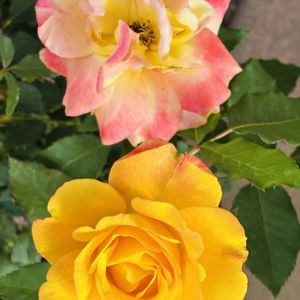 きょうのお花 黄色いバラ✨ 春に浜名湖フラワーパークで衝動買いしたヘンリー・フォンダを地植えにしました🎶 1輪ずつですが絶え間なく咲いてくれます♪ 2,3枚目は春に咲いた金蓮歩とリオサンバ 4,5枚目はピンクの薔薇 挿し木して5年目くらいと思いますが、今までで一番の花数です♡ こんな暑い日に咲くとあっという間に見頃が終わってしまうので寂しいですね(^^;)